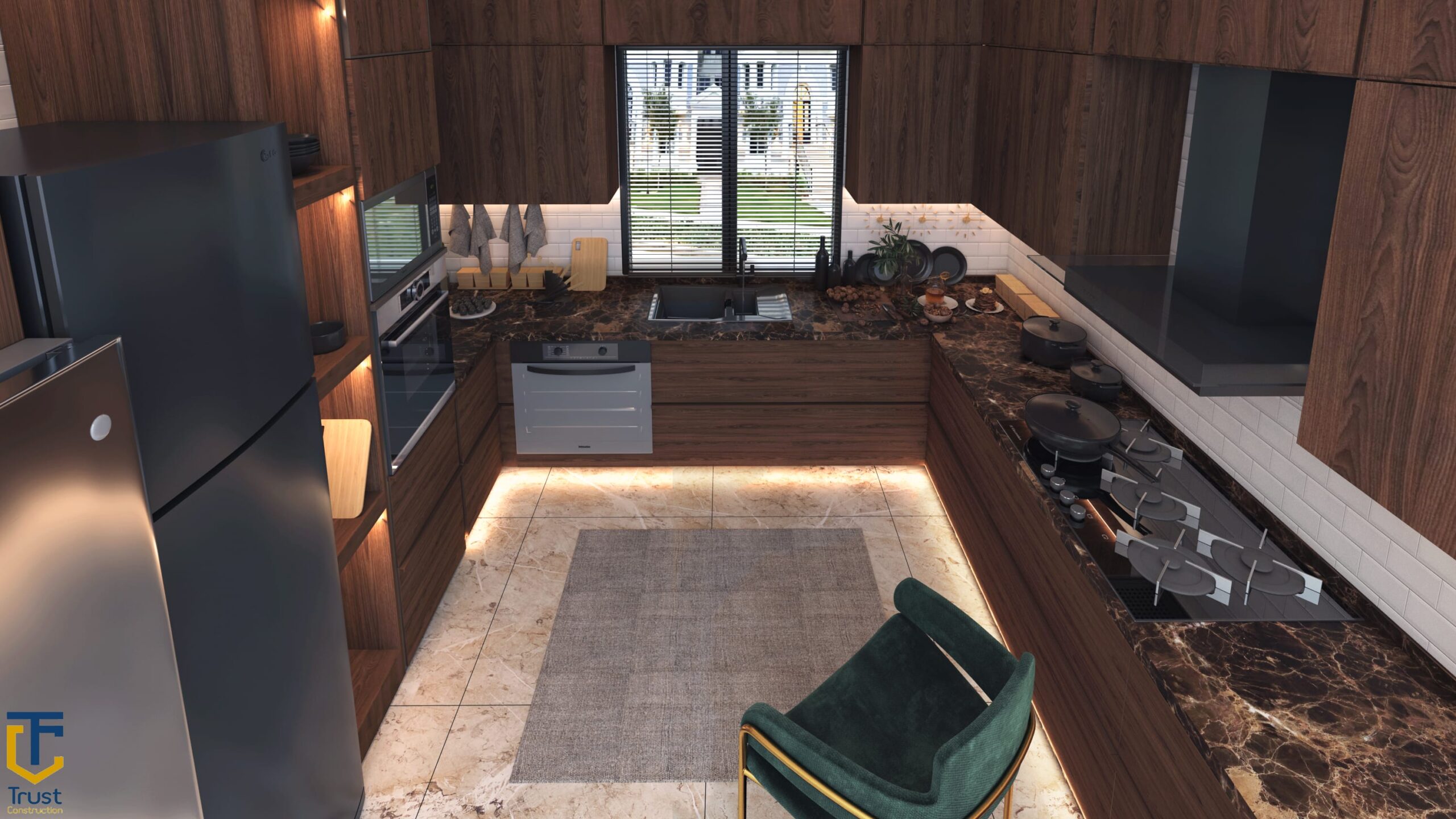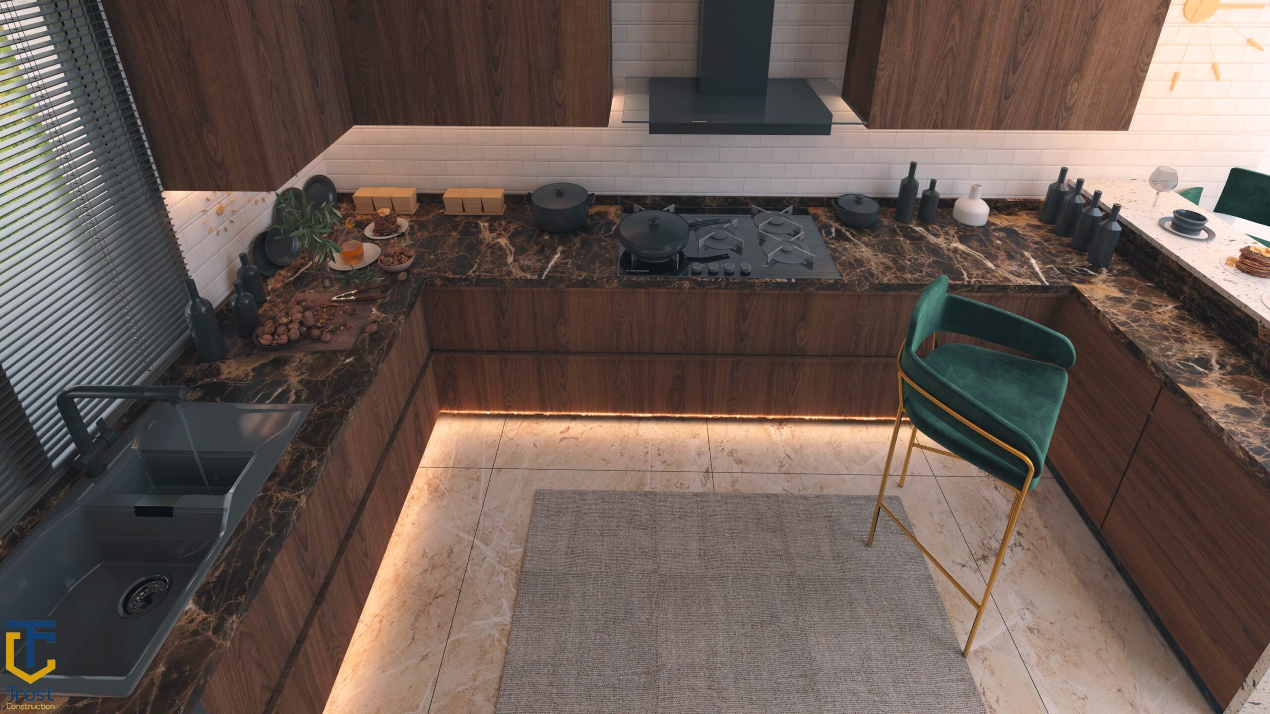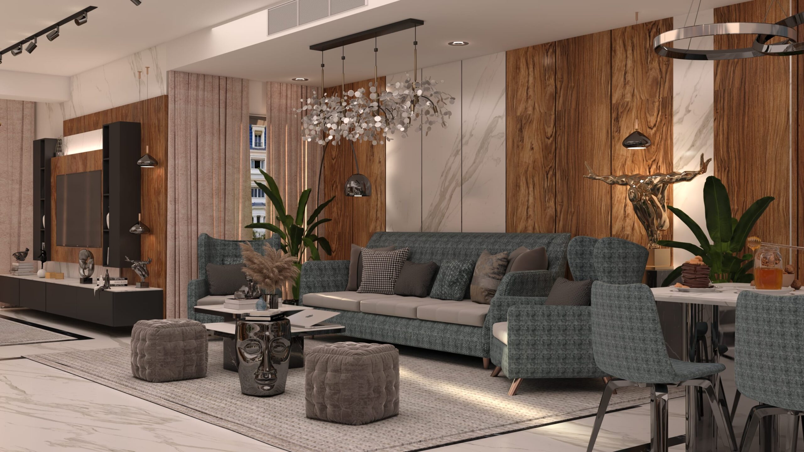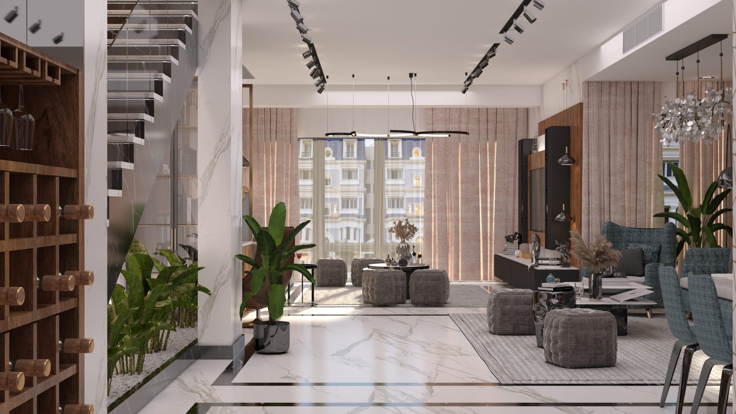 This refined project, with an approximate area of 450 sqm, was executed with a modern and elegant design that blends luxury with functionality, perfectly tailored to the client's taste. We began with a realistic 3D design, followed by careful pre-execution modifications to ensure the best outcome.